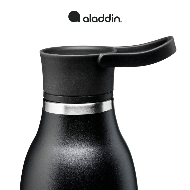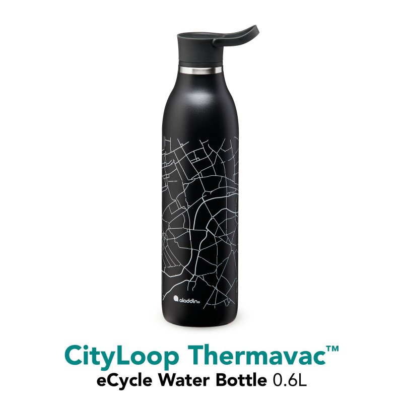 Ocelová láhev s dvojitou stěnou a vakuovou izolací ALADDIN CityLoop ThermavacTM z recyklované nerezové oceli ALADDIN eCycle® o objemu 0,6 litru je skutečnou novinkou. Zvláštním kouzlem je elegantní design - je vyroben z udržitelného materiálu ALADDIN eCycle®. Speciálně vyvinutá inovativní vakuová izolace udrží vaše nápoje studené až 12 hodin. Protiskluzový, extrémně odolný práškový nátěr zajišťuje pohodlné uchopení a flexibilní poutko na prst integrované do víčka dělá z lahví na pití stylové výrobky na cesty. Izolované láhve jsou vyrobeny z 90 % z recyklované nerezové oceli, která je certifikovaná a bezpečná pro potraviny. Značka ALADDIN používá kvalitní nerezovou ocel a plastové díly které neobsahují BPA ani jiná změkčovadla. Značka ALADDIN produkty vyvíjí, vyrábí a testuje. Proto láhve značky ALADDIN nenajdete nikde jinde než u značky ALADDIN. Své produkty testuje v EU a podle norem EU, nezávislými laboratořemi třetích stran.