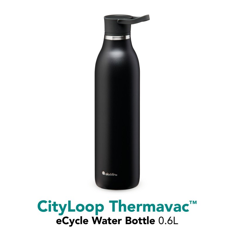 Ocelová láhev s dvojitou stěnou a vakuovou izolací ALADDIN CityLoop ThermavacTM z recyklované nerezové oceli ALADDIN eCycle® o objemu 0,6 litru je skutečnou novinkou. Zvláštním kouzlem je elegantní design - je vyroben z udržitelného materiálu ALADDIN eCycle®. Speciálně vyvinutá inovativní vakuová izolace udrží vaše nápoje studené až 12 hodin. Protiskluzový, extrémně odolný práškový nátěr zajišťuje pohodlné uchopení a flexibilní poutko na prst integrované do víčka dělá z lahví na pití stylové výrobky na cesty. Izolované láhve jsou vyrobeny z 90 % z recyklované nerezové oceli, která je certifikovaná a bezpečná pro potraviny. Značka ALADDIN používá kvalitní nerezovou ocel a plastové díly které neobsahují BPA ani jiná změkčovadla. Značka ALADDIN produkty vyvíjí, vyrábí a testuje. Proto láhve značky ALADDIN nenajdete nikde jinde než u značky ALADDIN. Své produkty testuje v EU a podle norem EU, nezávislými laboratořemi třetích stran.