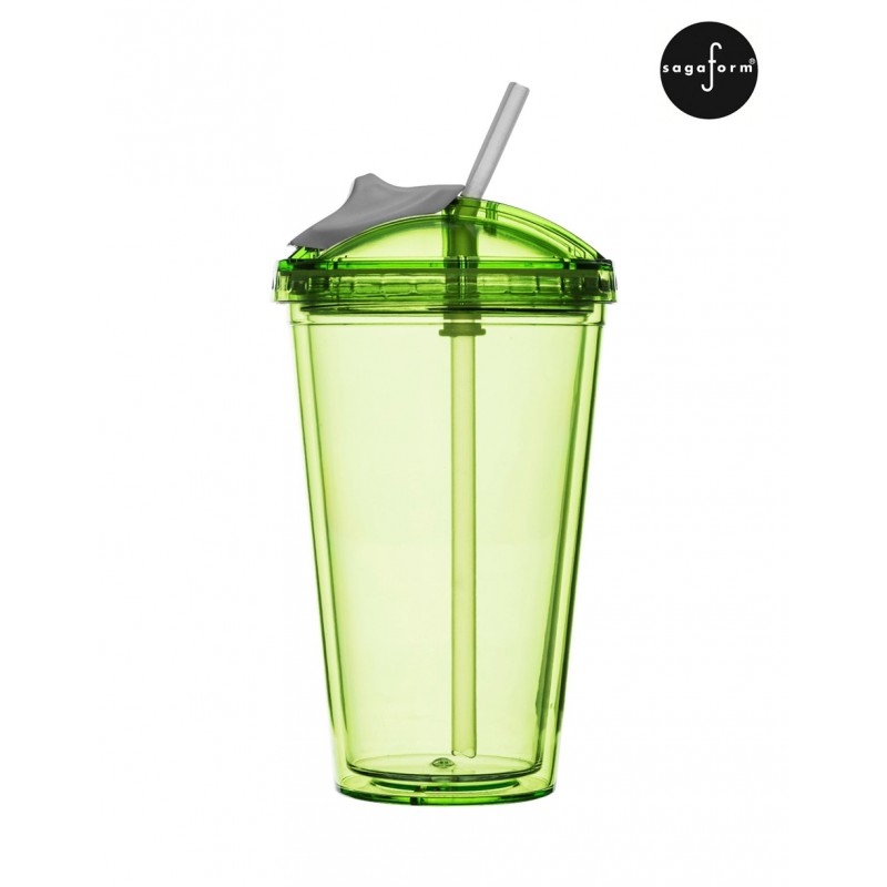 Průhledný zelený hrnek je dodáván včetně brčka a nesmí chybět na Vašem stole.