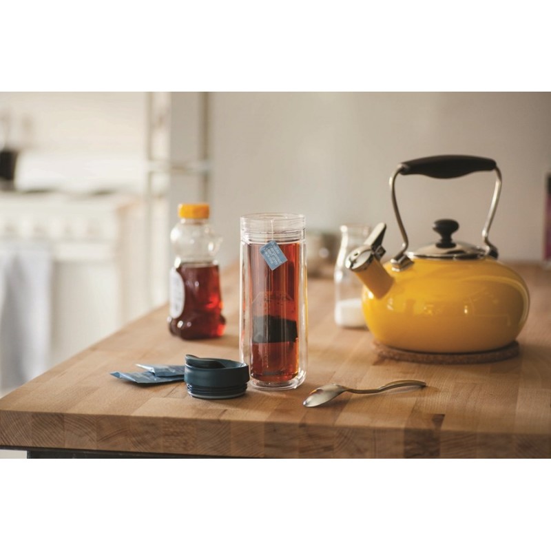 Vychutnejte si svůj oblíbený čaj! Hrnek s infusérem na čajový sáček má dvojité stěny pro udržení správné teploty a trendy fialovou barvu. Objem: 0,35 l
