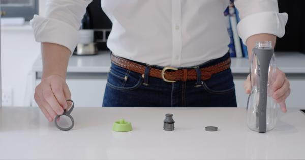 Láhev EAU GOOD Duo je vyrobena z BPA-free Tritanu (kopolyester bez obsahu bisfenolu A - BPA). Binchotanová tyčinka se do láhve umísťuje tak, že láhev stlačíte a roztáhnete - tyčinka je pak opřena jedním koncem o dno láhve a druhým zapadne do tvarovaného výčnělku.